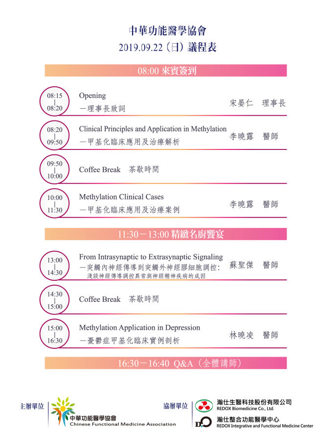 Master for Live Well 掌控青春泉源 掌握幸福活 - 2019甲基化與荷爾蒙功能醫學臨床實務論壇